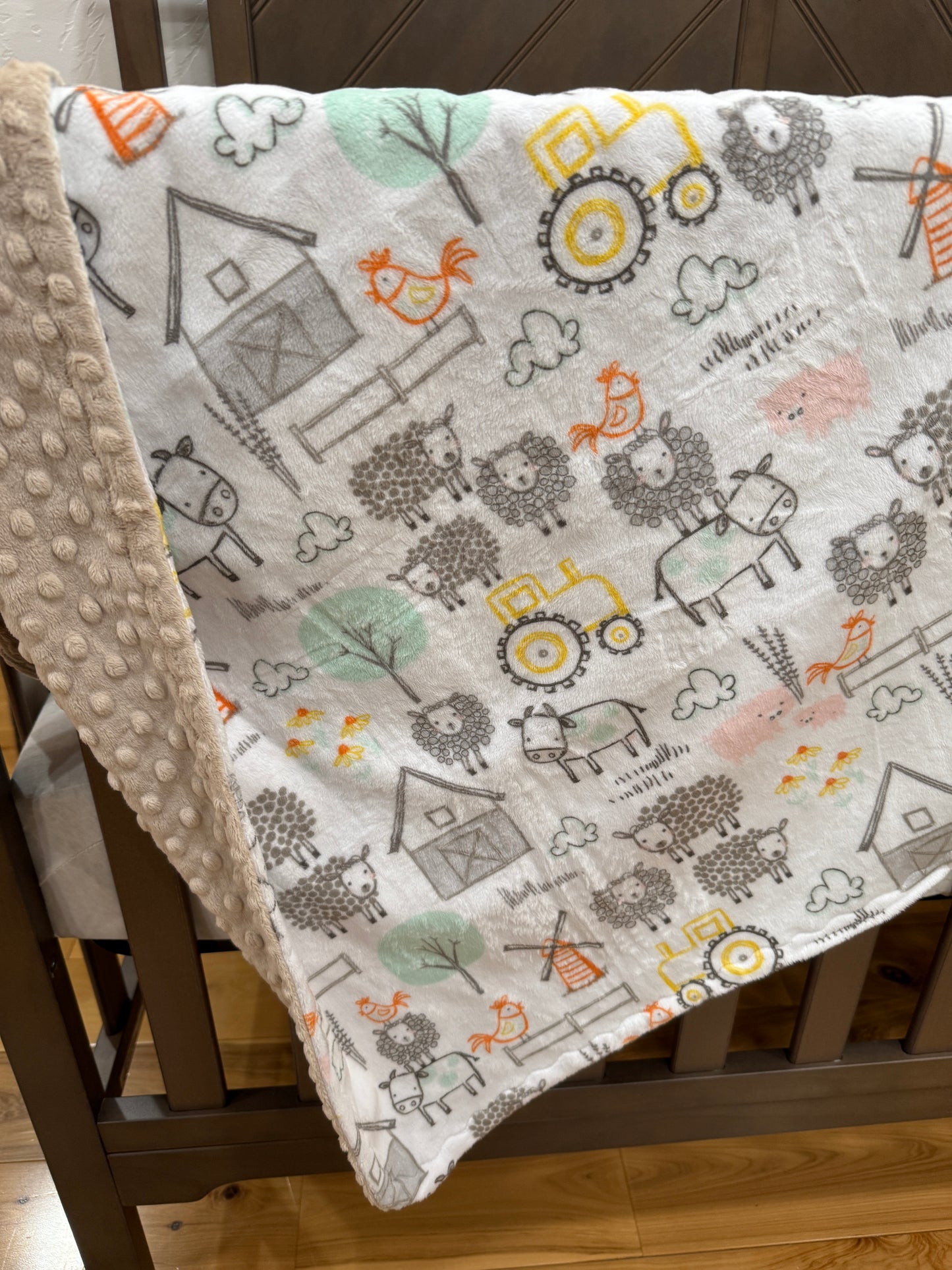 Infant Minky 29" X 39" -Branyard Friends w/Latte Dimple Dot
