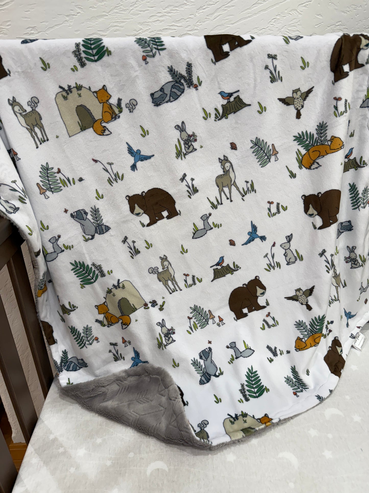 Infant Minky 29" X 39" - Woodland Friends w/Gray Arrow
