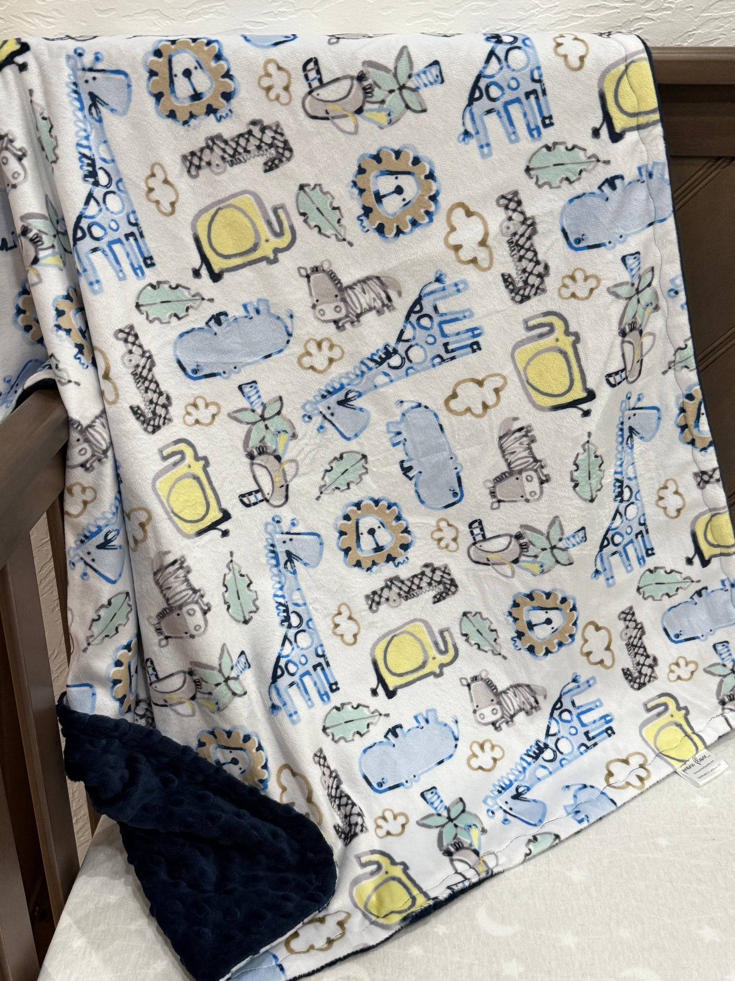 Infant Minky 29" X 39" - Safari w/Dimple Dot Navy back